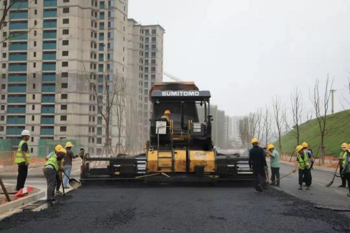 6月2日,在湖南湘江新區(qū)清風(fēng)路(石門塘路-聯(lián)江路)施工現(xiàn)場,十余名工人正在進(jìn)行瀝青攤鋪?zhàn)鳂I(yè),運(yùn)料車、攤鋪機(jī)、壓路機(jī)等數(shù)臺大型機(jī)械有序配合,高效運(yùn)轉(zhuǎn),目前已完成400米路面瀝青攤鋪工作,近期將完成主體施工。