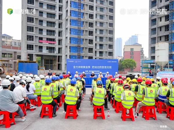 城發(fā)集團工程管理部、安全環(huán)保部,五礦二十三冶房建公司、湘潭市鴻杰開發(fā)建設(shè)有限公司(以下簡稱“鴻杰公司”)相關(guān)負(fù)責(zé)人出席,項目總包單位、監(jiān)理單位、各專業(yè)分包項目負(fù)責(zé)人及工人代表共計100多人參加活動。