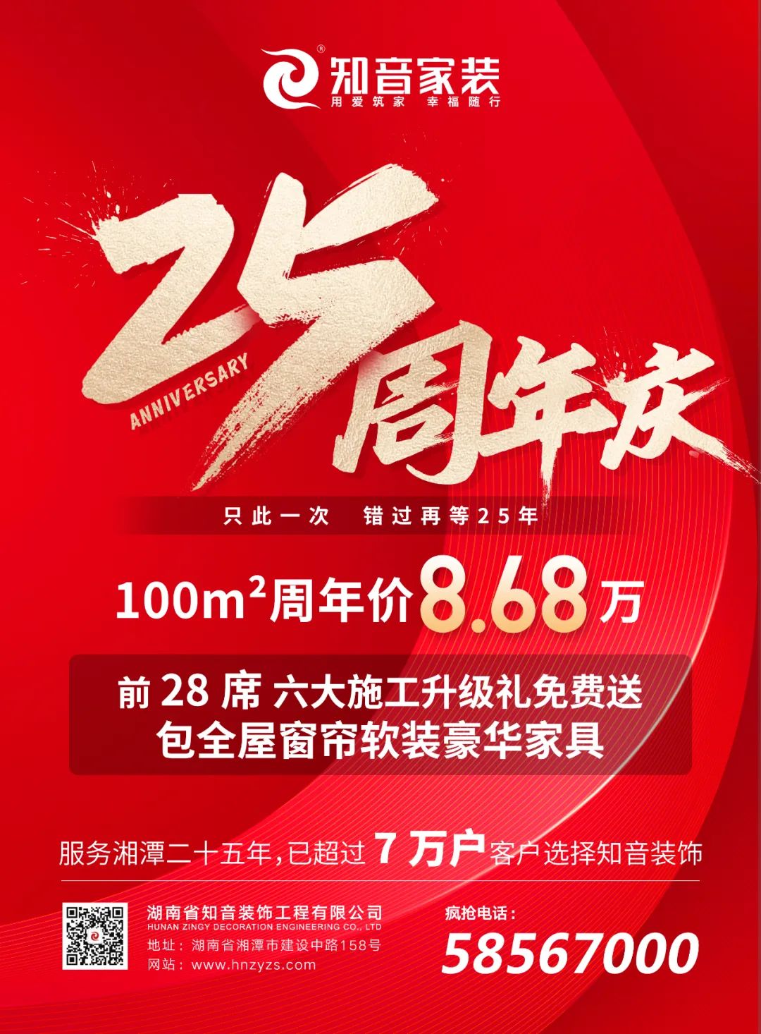 震驚湘潭!轉(zhuǎn)瘋了,知音家裝25周年慶 百平僅8.68萬,還有豪華大禮包,錯過再等25年!!!