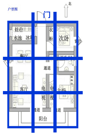圖三:在戶型圖中寫“井”字將圖分成9塊