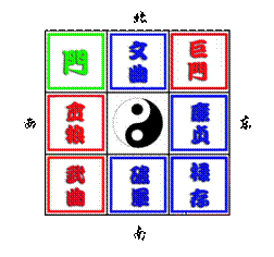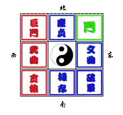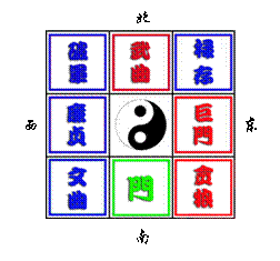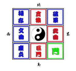 此圖共八張,代表八個方位,紅為吉星,藍為兇星,以上八個圖在七星轉(zhuǎn)柱筆或七星名片上都有,適合隨身攜帶不必死記硬記。注意臥室與廚放在吉星則吉,在兇星則兇,廁所在吉星則兇,在兇星則吉。