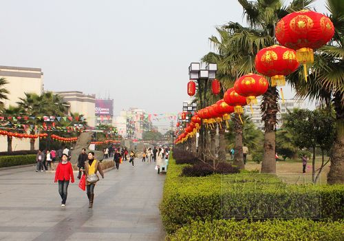 東方紅廣場(chǎng)上,大紅燈籠高高掛,充滿了節(jié)日的喜慶氣氛