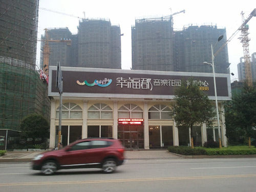 營銷中心后面屹立在建的樓盤就是幸福郡音樂花園項(xiàng)目
