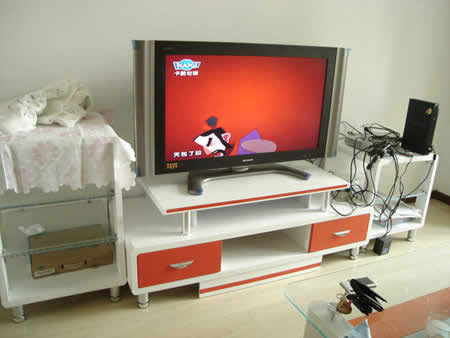 偶家客廳跟大房間在一起,因?yàn)榫嚯x比較狹,所以37寸液晶看起來已經(jīng)很爽啦~~