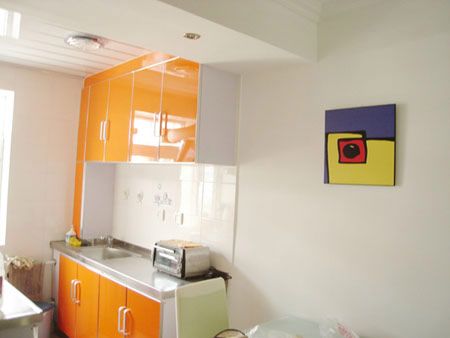 櫥柜都是用的橙色,一進(jìn)門就能看到,滿眼陽(yáng)光燦爛,白天工作再煩心情也能一下就變好了~~