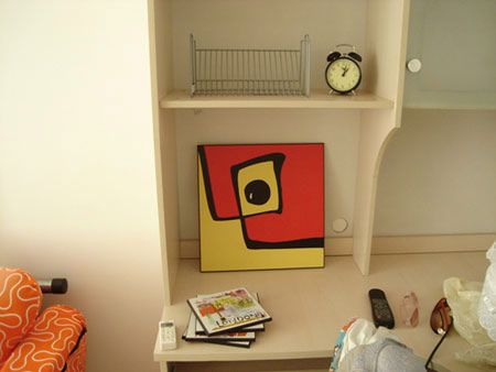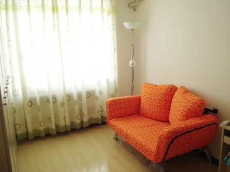 這是小房間,作為更衣間和書房用,放了一張沙發(fā)床,朋友來的時(shí)候隨時(shí)可以用,落地?zé)羰巧现苣﹦倧囊思屹I回來的,才99元,超值的~~