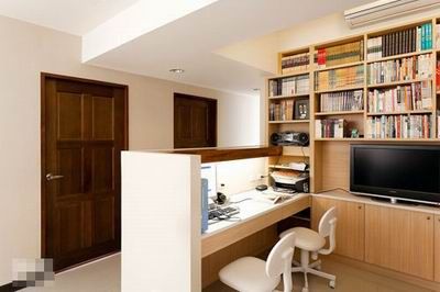 精算過(guò)加厚的系統(tǒng)柜,拓展出豐富的藏書(shū)空間,下方的電視墻,可于用餐時(shí)間同時(shí)觀看,加強(qiáng)了視覺(jué)景深與功能性。