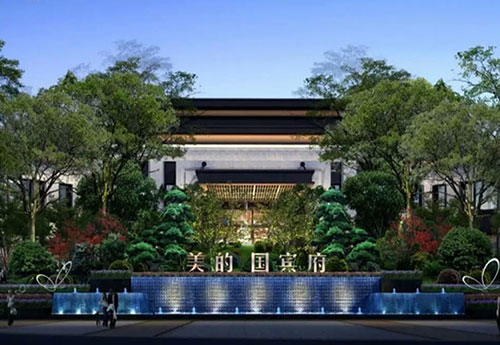 項目介紹:作為美的地產高端府系列產品,湘潭壹號作品,美的國賓府采用和了國際豪宅普遍使用的新亞洲建筑風格,并融入了中式設計元素,點板結合,打造高品位居住空間。新中式園林風格,三大主題園林,使用名貴樹種構建的五重園林植被體系,獨家使用霧噴技術,給居者營造一個舒適健康的社區(qū)空間。