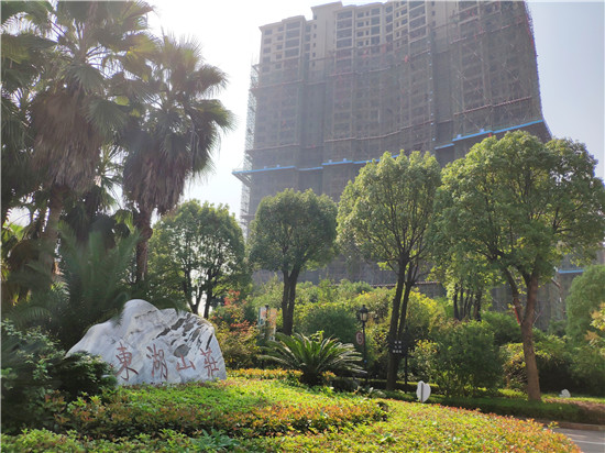 天元·東湖山莊1/2/3棟主體已封頂,外立面正在施工。