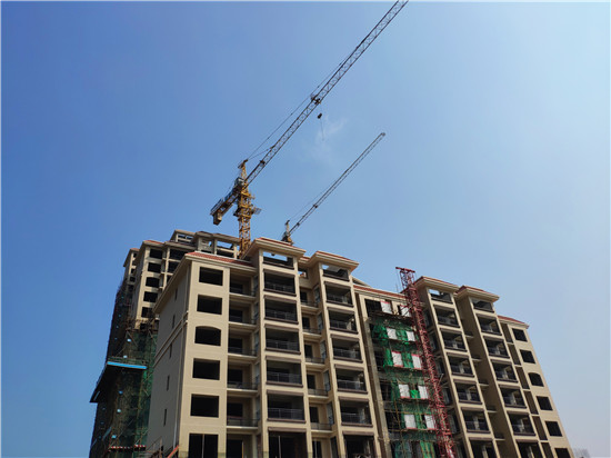天元·東湖山莊6/7棟完成封頂,4/5棟主體完成過半,正在抓緊時(shí)間施工。