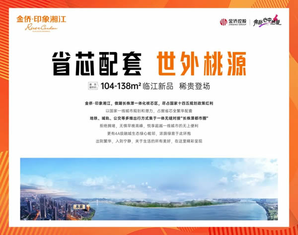 臻有,就是價值。對于城市精英來說,不動產(chǎn)名單上少了這一段江景,都會留下遺憾。長株潭核芯地段、一線濱江資源、優(yōu)秀高端品質(zhì),金僑·印象湘江以多重珍罕價值疊加,成就湘潭宜居住宅的硬通貨、城市核芯濱江房的藏品,真正賣一席少一席,典藏好房不容錯過。