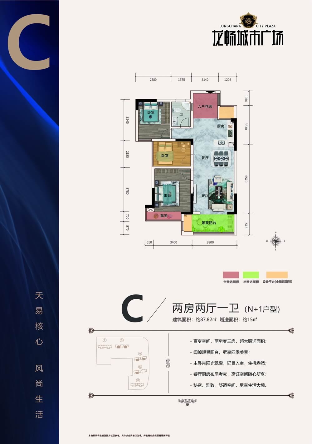 營造城市難以復制之藝術空間,建面約87-199㎡ N+1稀缺現房、星空云復式,超大贈送面積,約95%—120%超高得房率,更有入戶花園、寬景陽臺、多重飄窗、設備平臺全贈送等亮點空間設計,買兩房得三房,買三房得四房,以奢闊尺度筑造多重價值,演繹現代美學居住藝術。
