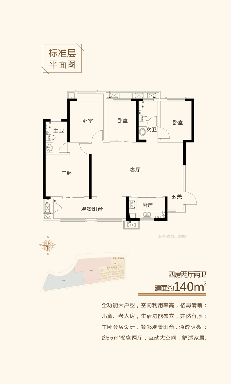 項(xiàng)目是一個(gè)以大都會(huì)建筑風(fēng)格為特色的高端品質(zhì)大盤,每一個(gè)細(xì)節(jié)都匠心推敲,高度的人性化設(shè)計(jì),將綠化環(huán)保、智能化、全齡化等概念植入產(chǎn)品,彰顯舒適便捷,溫情互動(dòng)的理念。