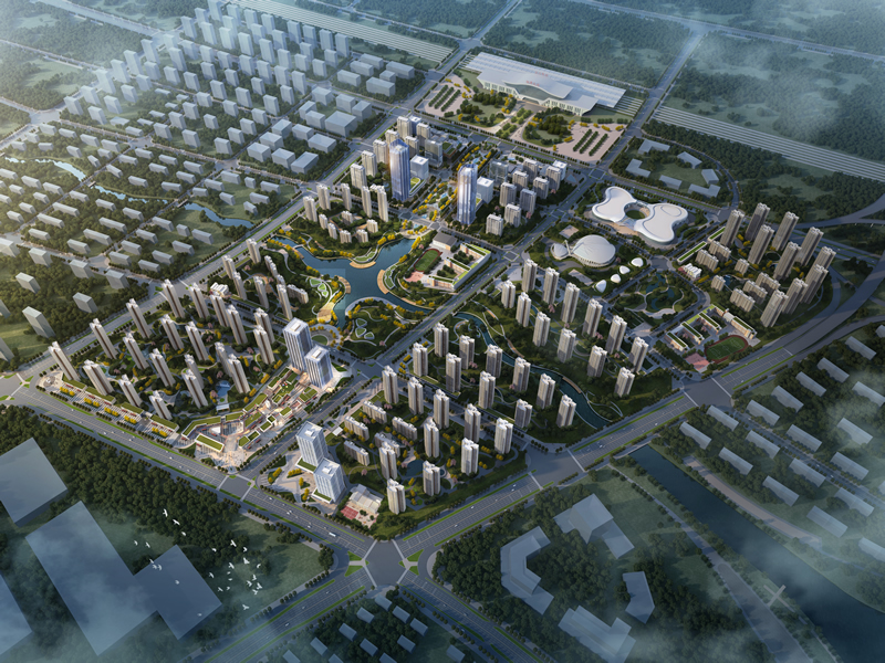 項目目前規(guī)劃總用地2007畝,總建筑面積約215.85萬㎡,計容面積:168.6萬㎡,凈容積率:2.29,目前共分三期開發(fā)