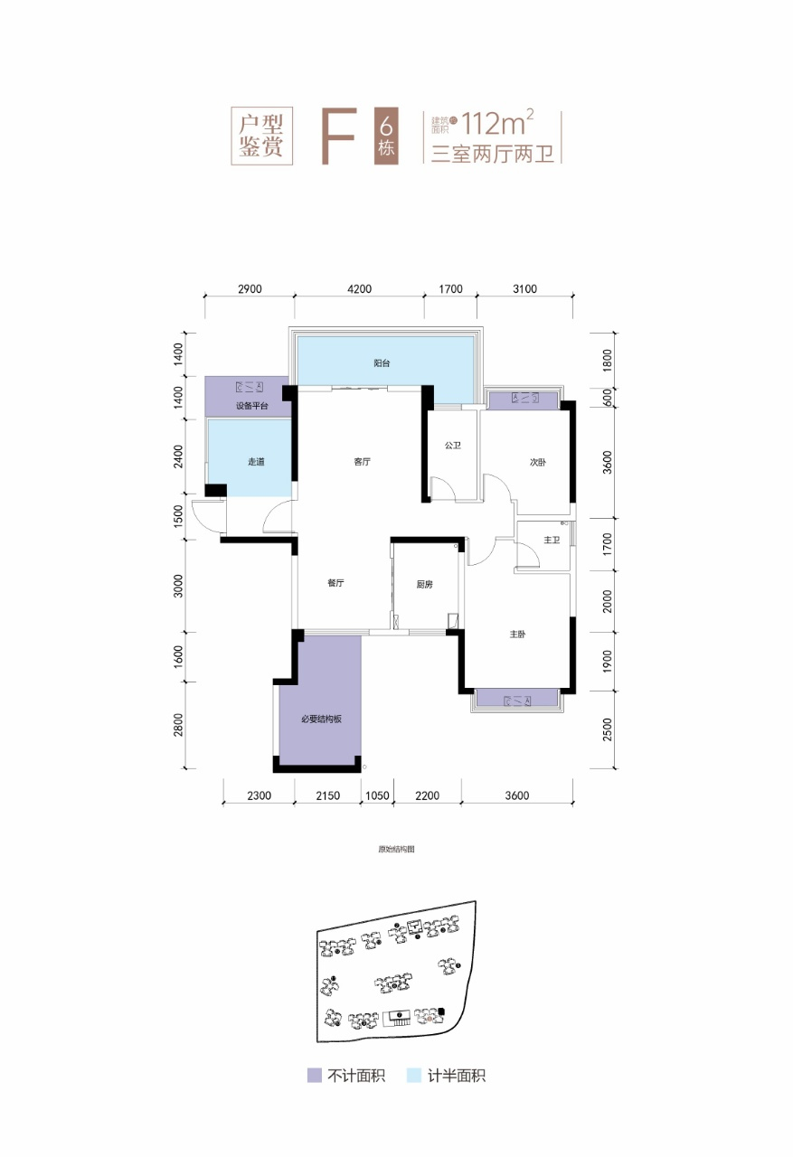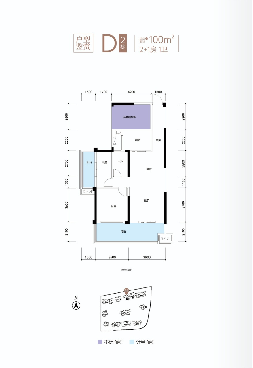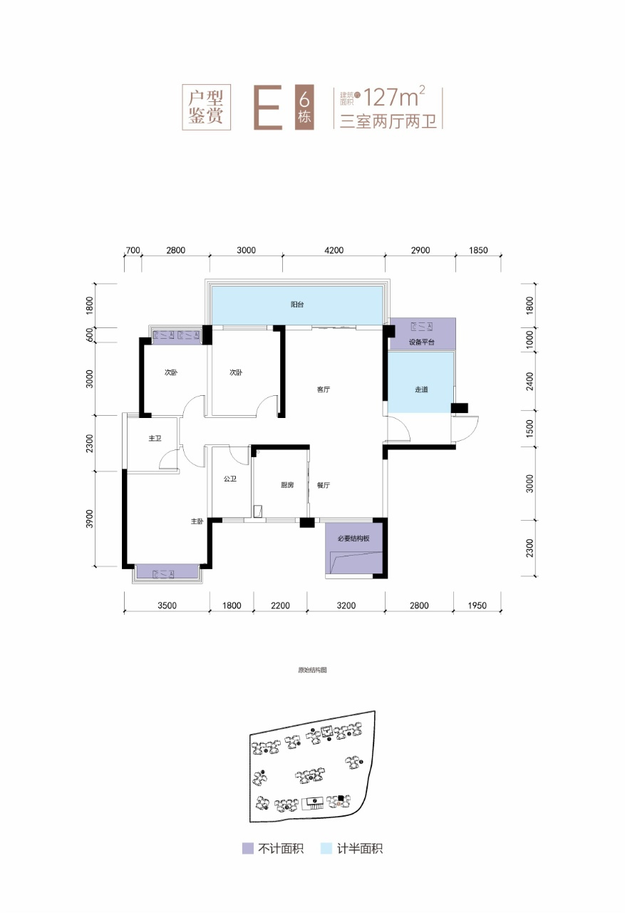 H戶型:建筑面積約100㎡,贈送面積約21.43㎡