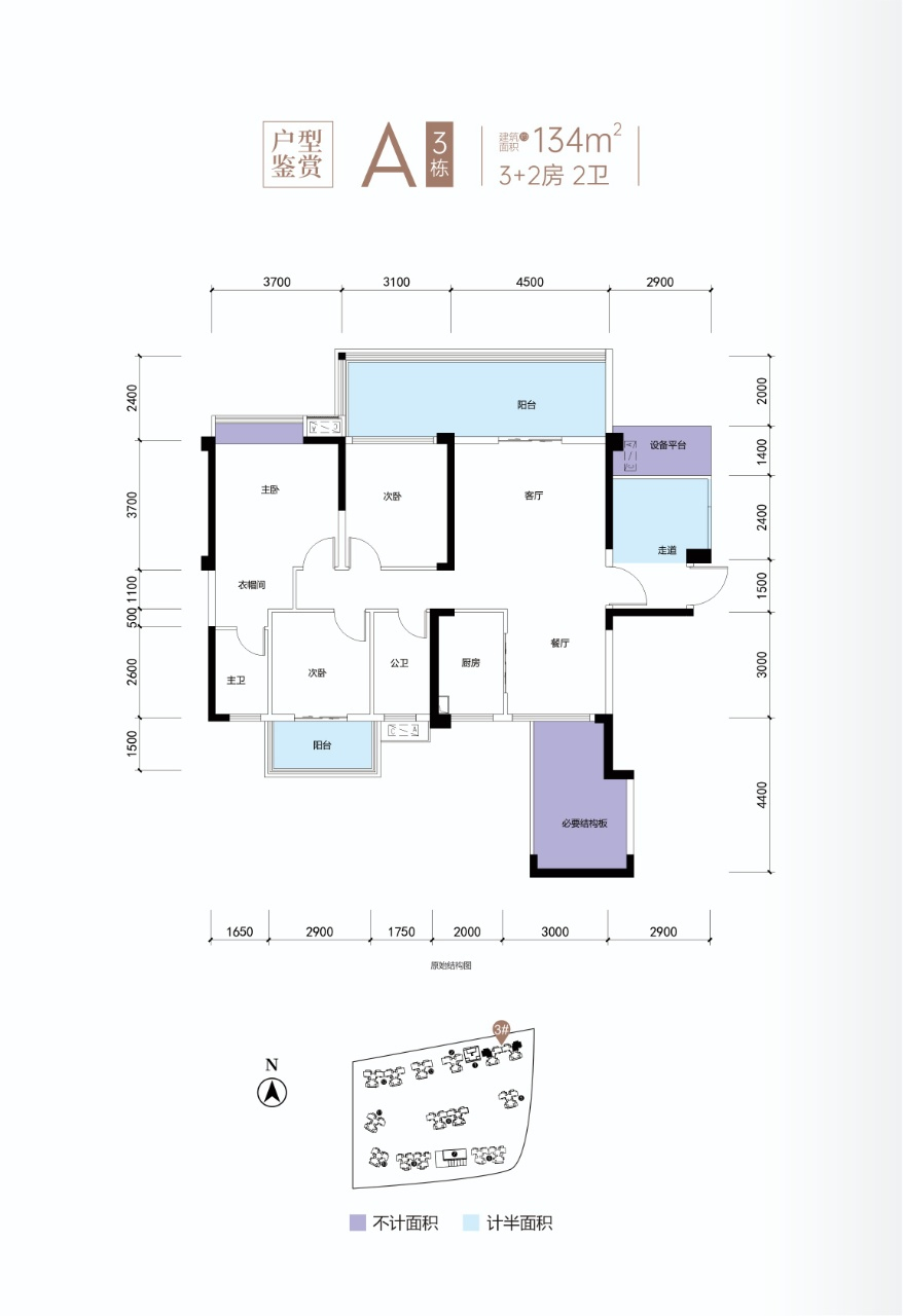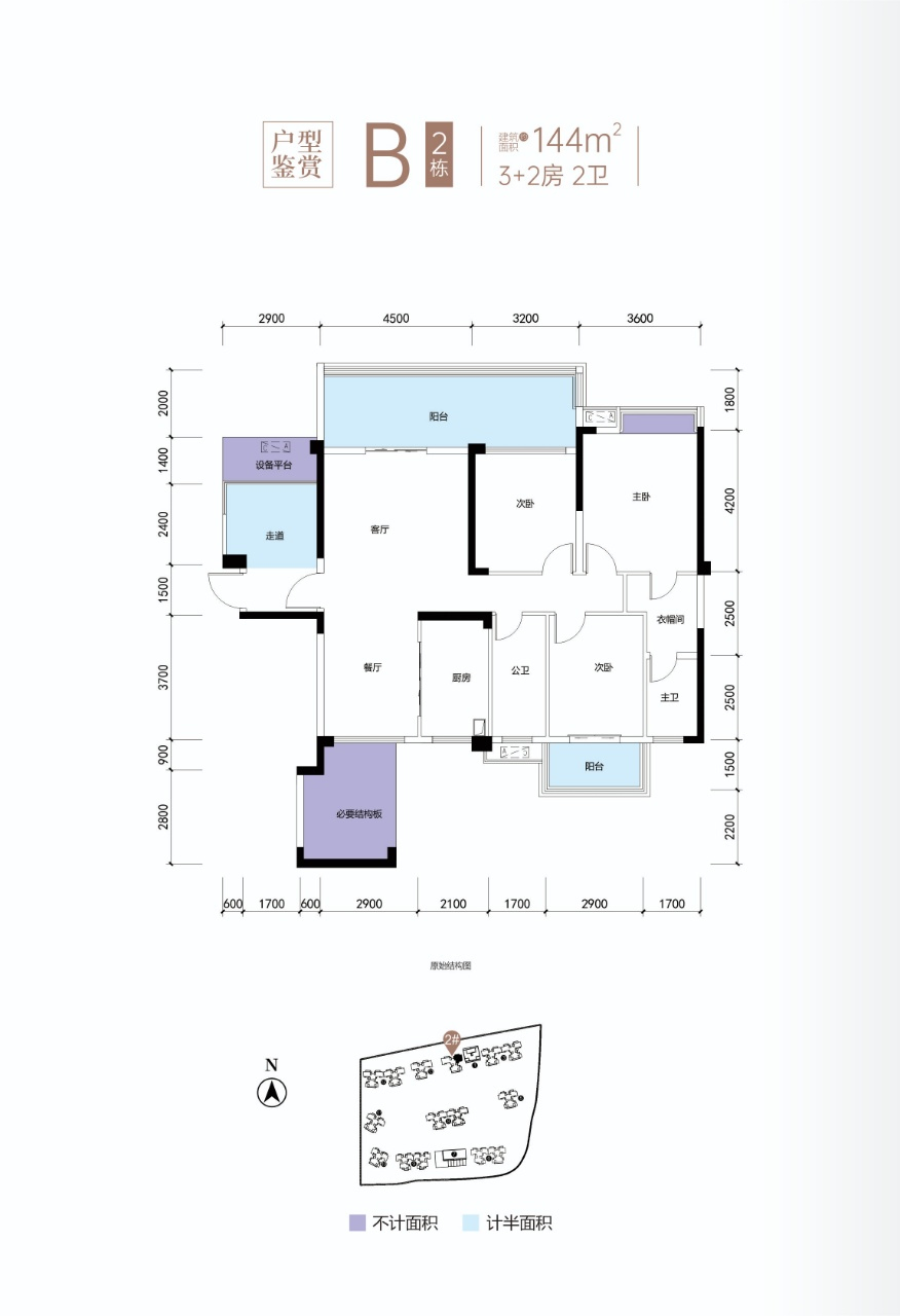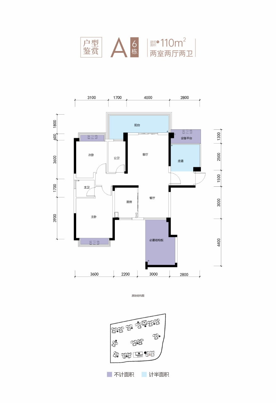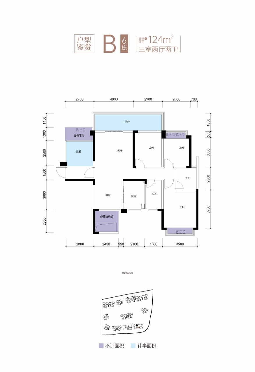 H戶型:建筑面積約100㎡,贈送面積約21.43㎡