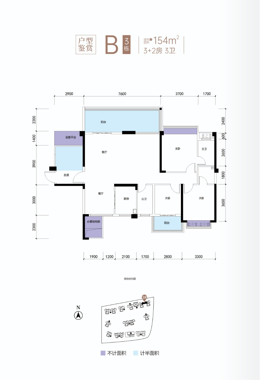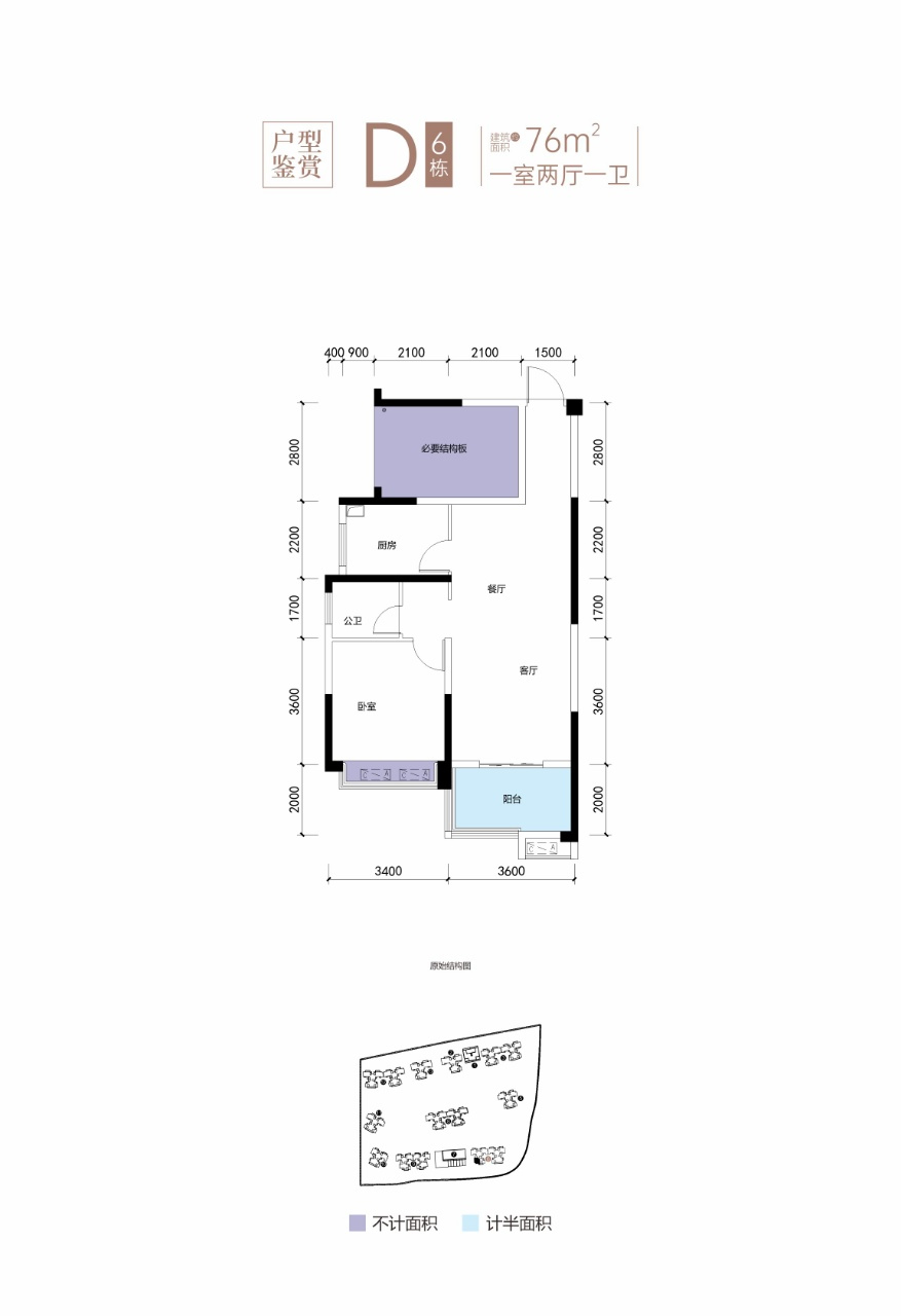 D戶型:建筑面積約76㎡,贈送面積約15.65㎡